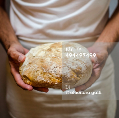 foto di panettiere con il mano un pagnotta appena sfornata